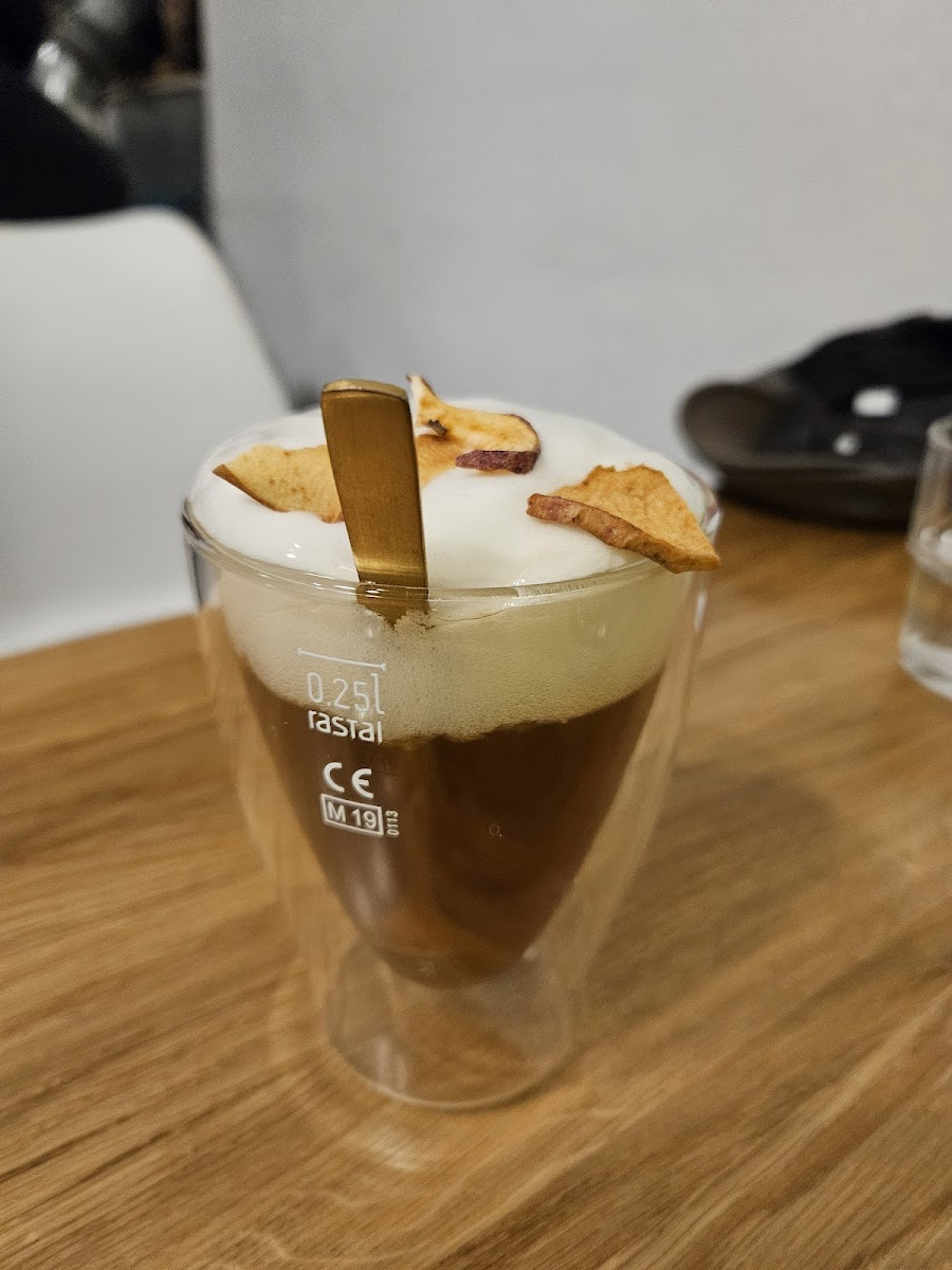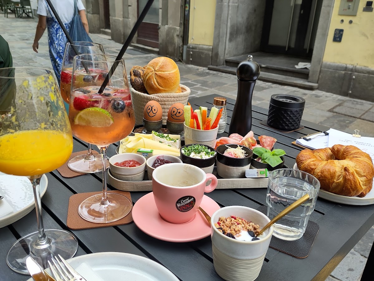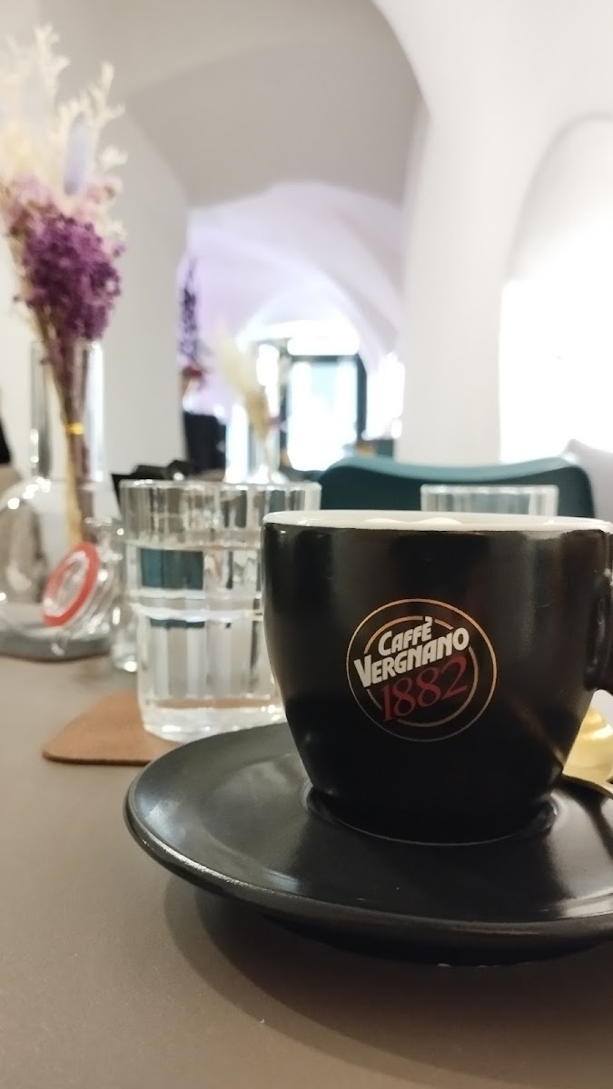 Awesome location, friendly service (also in English), great ambiance (mix of late medieval interior with bright colors and comfortable furniture). The coffee and mocktails we ordered were refreshing and delicious.